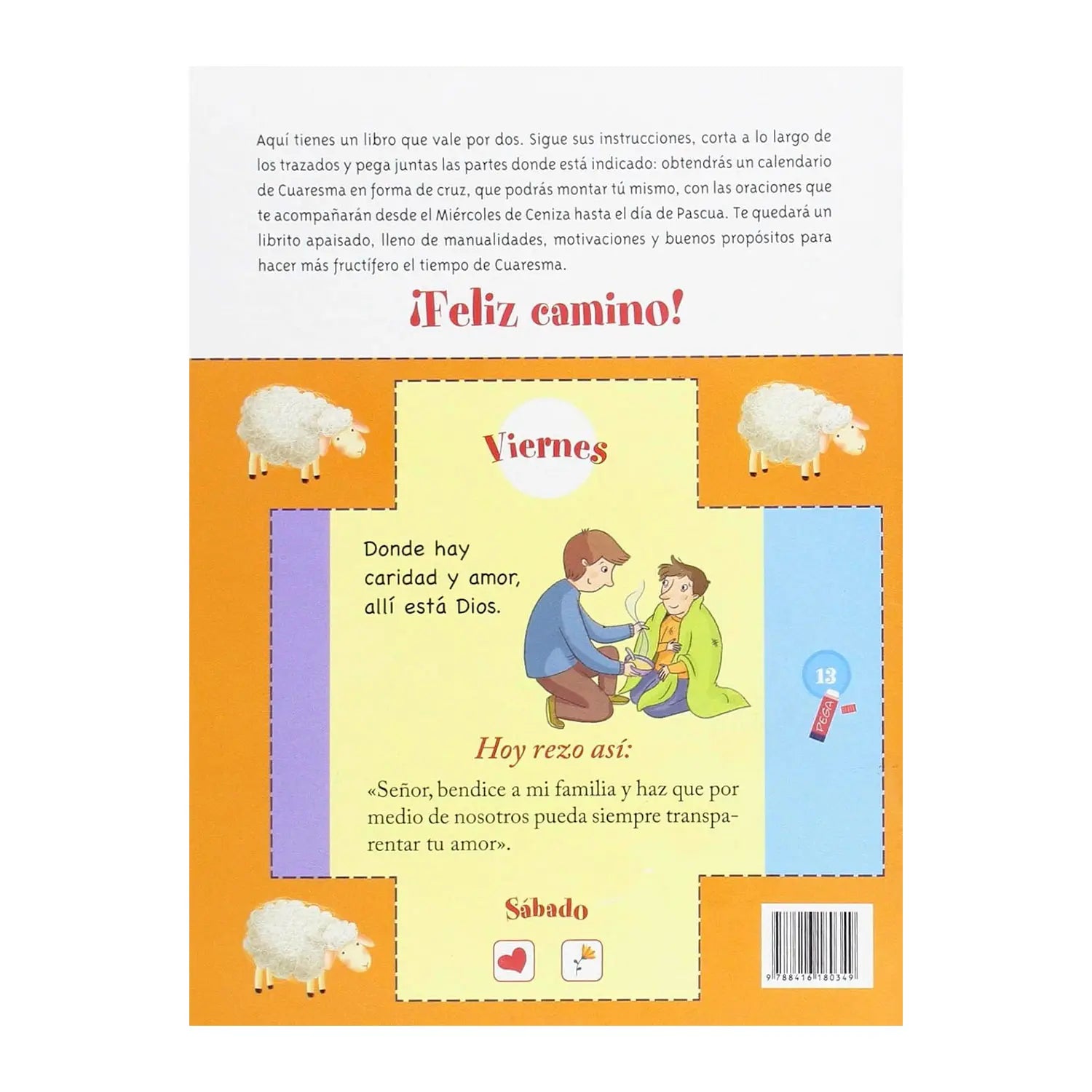 Aquí tienes un libro que vale por dos. Sigue sus instrucciones, corta a lo largo de los trazados y pega juntas las partes donde está indicado: obtendrás un calendario de Cuaresma en forma de cruz, que podrás montar tú mismo, con las oraciones que te acompañarán desde el Miércoles de Ceniza hasta el día de Pascua.