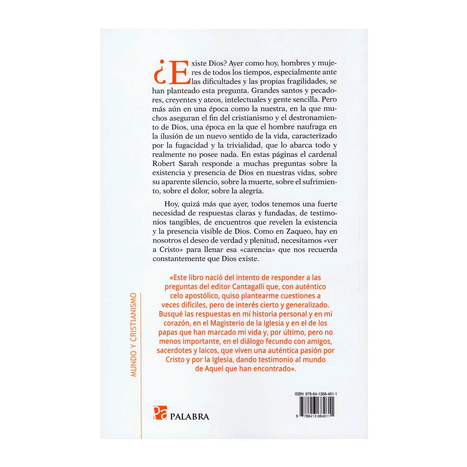 ¿Existe Dios? Ayer como hoy, hombres y mujeres de todos los tiempos, especialmente ante las dificultades y las propias fragilidades, se han planteado esta pregunta. Grandes santos y pecadores, creyentes y ateos, intelectuales y gente sencilla. Pero más aún en una época como la nuestra, en la que muchos aseguran el fin del cristianismo y el destronamiento de Dios, una época en la que el hombre naufraga en la ilusión de un nuevo sentido de la vida, caracterizado por la fugacidad y la trivialidad, que lo abarca todo y realmente no posee nada. En estas páginas el cardenal Robert Sarah responde a muchas preguntas sobre la existencia y presencia de Dios en nuestras vidas, sobre su aparente silencio, sobre la muerte, sobre el sufrimiento, sobre el dolor, sobre la alegría.