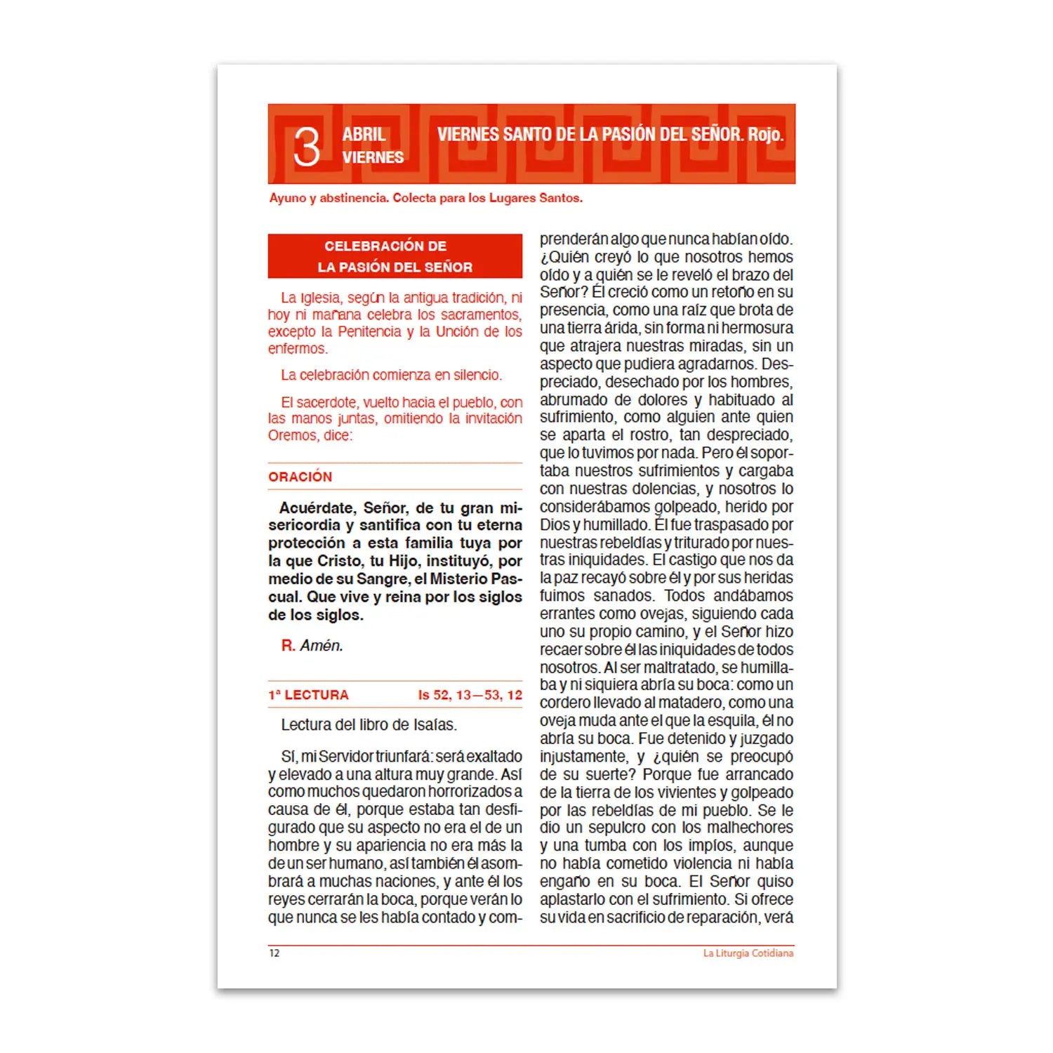• Textos y oraciones para preparar y acompañar la misa de cada día, destacando las celebraciones de Jueves Santo (2 de abril), Viernes Santo (3 de abril), Sábado Santo (4 de abril), Domingo de Pascua (5 de abril), y Segundo de Pascua o de la Divina Misericordia (12 de abril), entre otras.