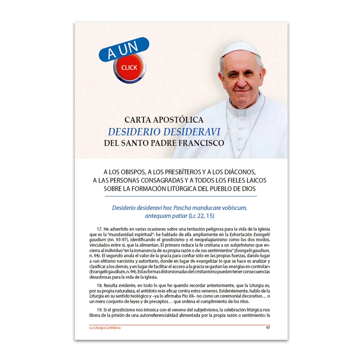 • A UN CLICK: Carta Apostólica Desiderio Desideravi del Santo Padre Francsico.