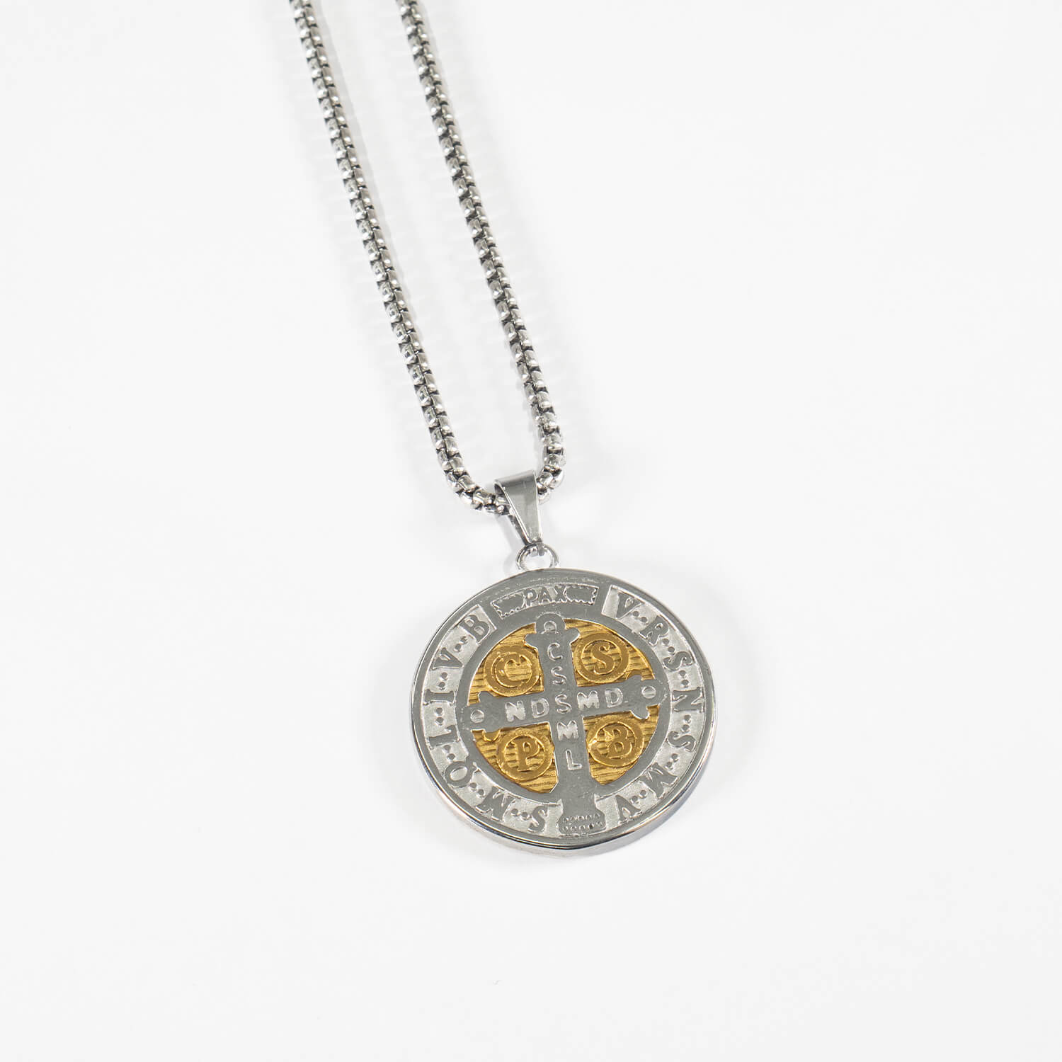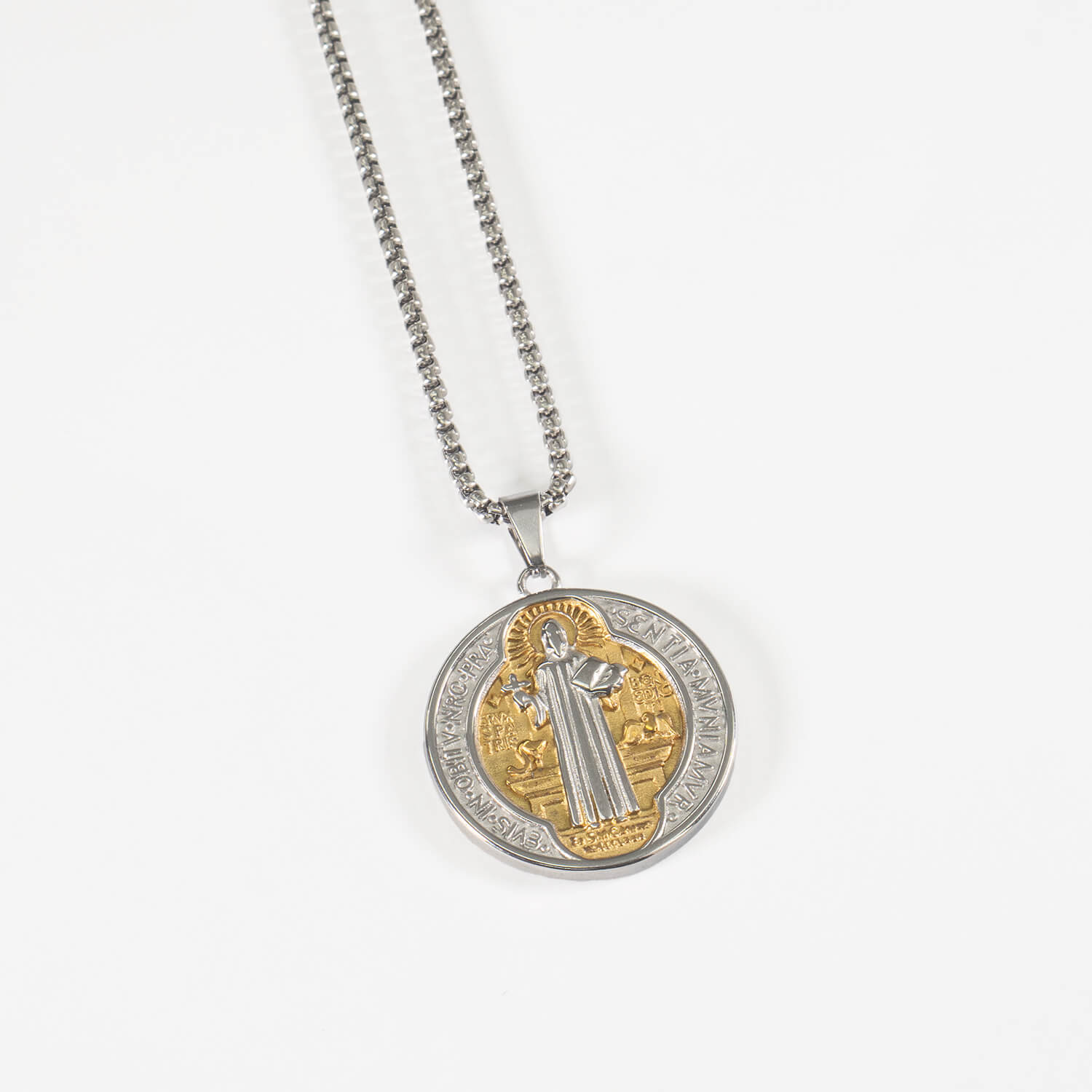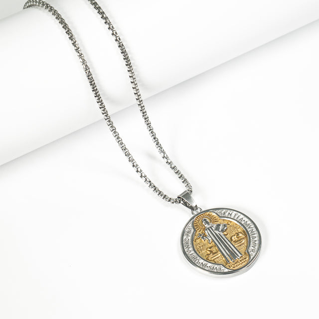 Medalla y cadena San Benito Plateada