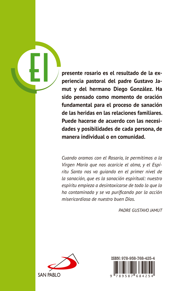 El presente rosario es el resultado de la experiencia pastoral del p. Gustavo Jamut y del hermano Diego González. Ha sido pensado como momento de oración fundamental para el proceso de sanación de las heridas en las relaciones familiares. Puede hacerse de acuerdo con las necesidades y posibilidades de cada persona, de manera individual o en comunidad.