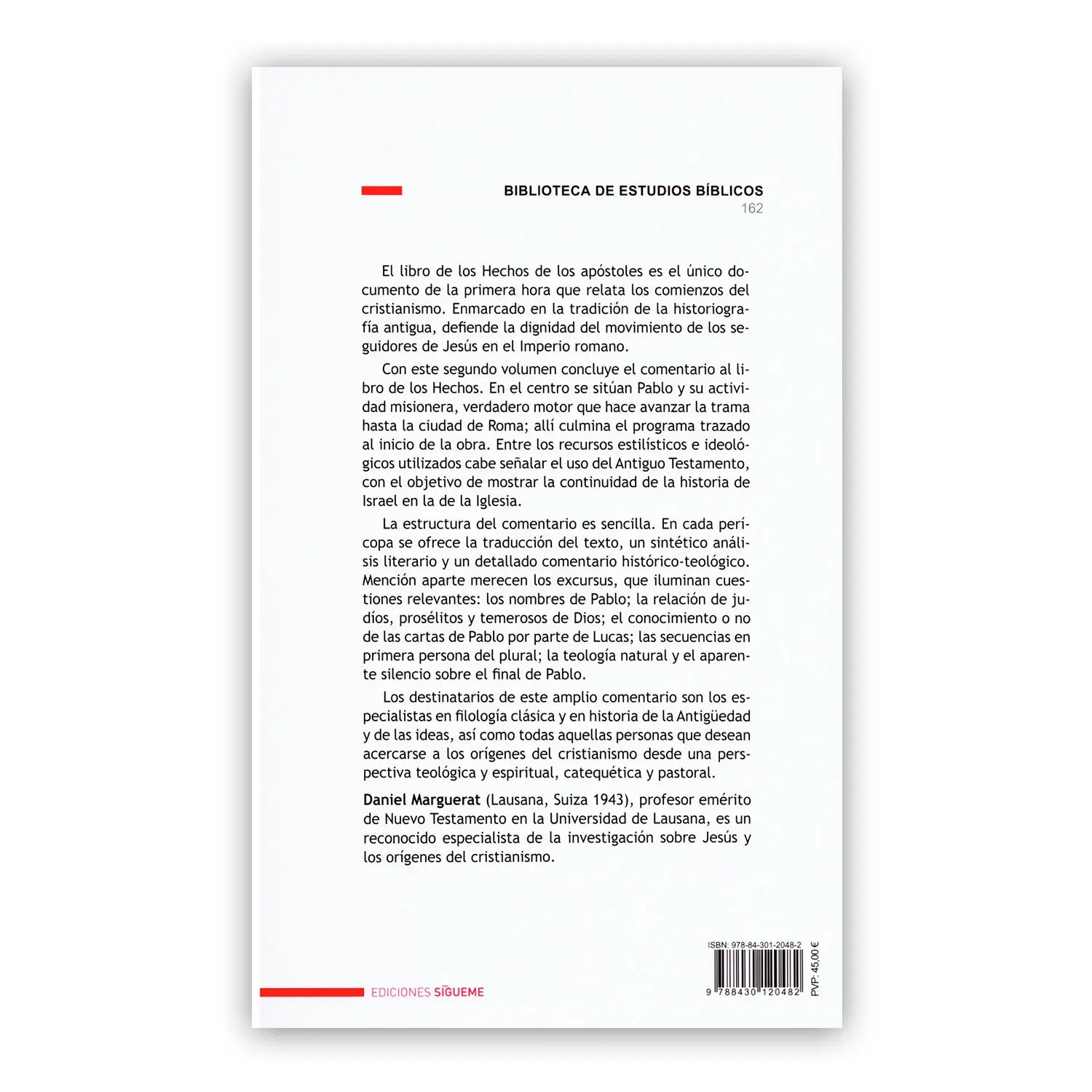 Con este segundo volumen concluye el comentario al libro de los Hechos. En el centro se sitúan Pablo y su actividad misionera, verdadero motor que hace avanzar la trama hasta la ciudad de Roma; allí culmina el programa trazado al inicio de la obra. Entre los recursos estilísticos e ideológicos utilizados cabe señalar el uso del Antiguo Testamento, con el objetivo de mostrar la continuidad de la historia de Israel en la de la Iglesia.