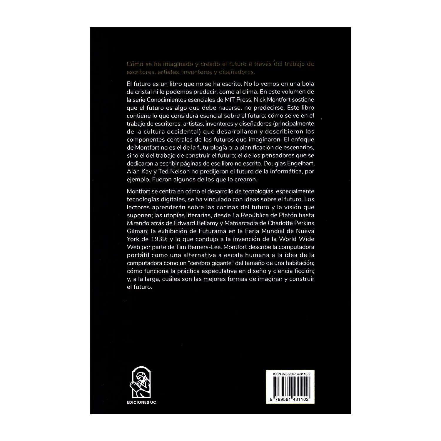 El futuro es un libro que no se ha escrito. No lo vemos en una bola de cristal ni lo podemos predecir, como al clima. En este volumen de la serie CONOCIMIENTOS ESENCIALES de MIT Press, Nick Montfort sostiene que el futuro es algo que debe hacerse, no predecirse. El texto contiene lo que considera esencial sobre el futuro: cómo se ve en el trabajo de escritores, artistas, inventores y diseñadores (principalmente de la cultura occidental) que desarrollaron y describieron los componentes centrales de los futuros que imaginaron. Los lectores aprenderán sobre las cocinas del futuro y la visión que suponen las utopías literarias, cómo funciona la práctica especulativa en diseño y ciencia ficción y, a la larga, cuáles son las mejores formas de imaginar y construir el futuro.
