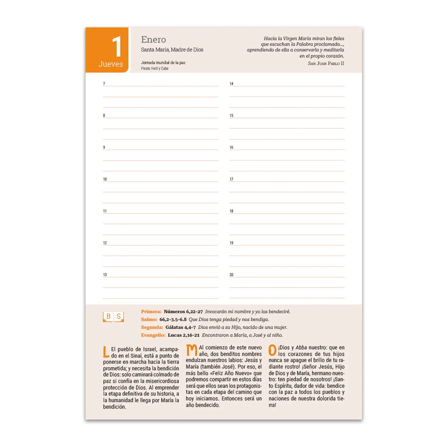 Esta agenda quiere contribuir a actualizar y vivir cada día la Palabra de Dios, sobre todo a través de las lecturas bíblicas del año litúrgico.
