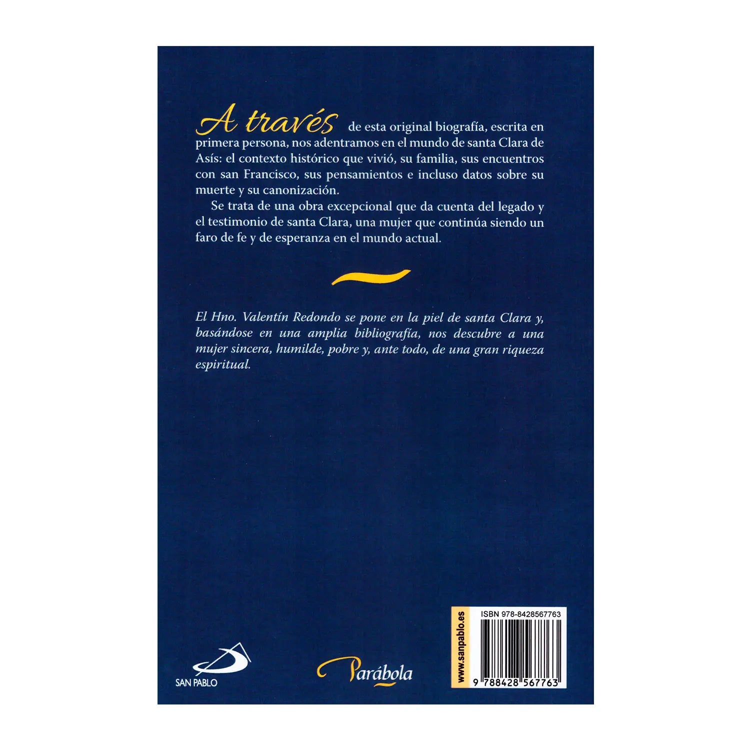 Mediante esta ficción autobiográfica, el hermano Valentín Redondo se pone en la piel de santa Clara para presentarnos su vida, sus pensamientos, su legado y su testimonio. Basándose en una amplia bibliografía, y documentando su contexto histórico, sus relaciones con su familia, sus encuentros con san Francisco, incluso su muerte y su canonización, descubrimos en Clara de Asís a una mujer sincera, humilde y pobre, de gran riqueza espiritual, que continúa siendo un faro de fe y esperanza en el mundo actual.