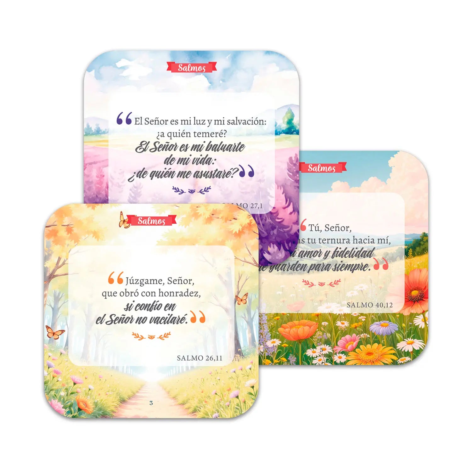 Caja de Oraciones Salmos. Se trata de una hermosa cajita que contiene 54 tarjetas que contienen, cantos poemas y oraciones sagradas situadas en la Biblia (antiguo testamento), que expresa alabanzas, suplicas, agradecimientos y lamentos hacia Dios. . Son considerados la "oración del pueblo de Dios" y han sido fundamentales tanto en la tradición cristiana para la adoración y la meditación.