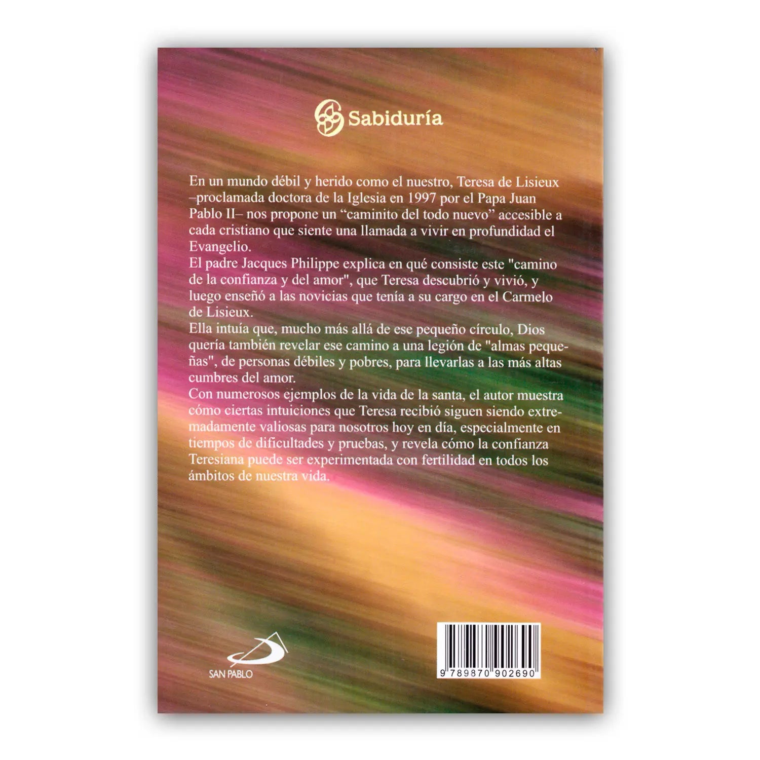 En un mundo débil y herido como el nuestro, Teresa de Lisieux –proclamada doctora de la Iglesia en 1997 por el Papa Juan Pablo II- nos propone un “caminito del todo nuevo”, accesible a cada cristiano que siente una llamada a vivir en profundidad el Evangelio. El padre Jacques Philippe explica en qué consiste este “camino de la confianza y del amor” que Teresa descubrió y vivió, y luego enseñó a las novicias que tuvo a cargo en el Carmelo de Lisieux. Con numerosos ejemplos de la vida de esta santa, el autor muestra cómo ciertas intuiciones que Teresa recibió siguen siendo extremadamente valiosas para nosotros hoy en día, especialmente en tiempos de dificultades y pruebas. También revela cómo la confianza Teresiana puede ser experimentada con fertilidad en todos los ámbitos de nuestra vida.